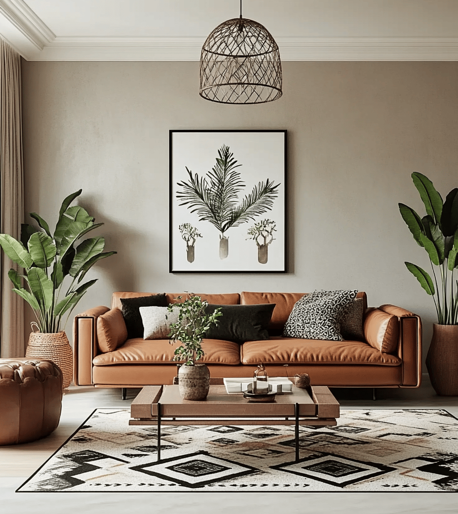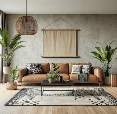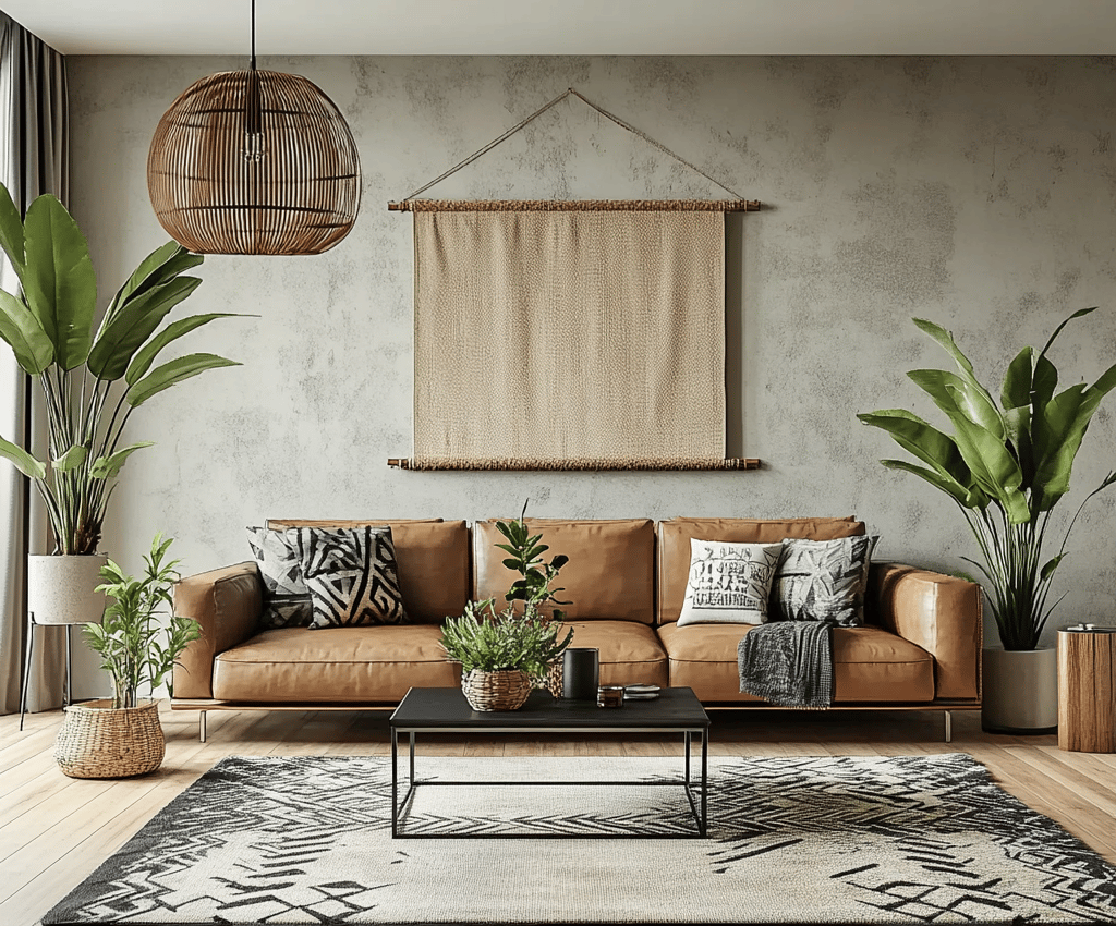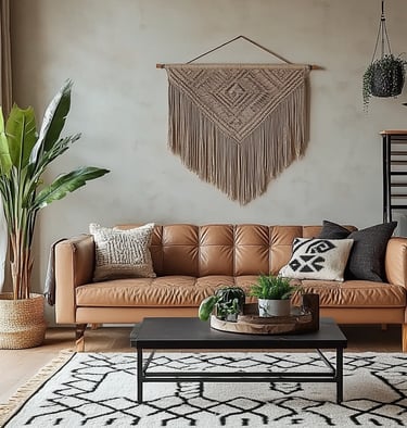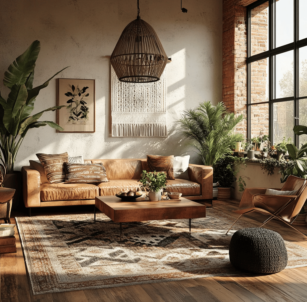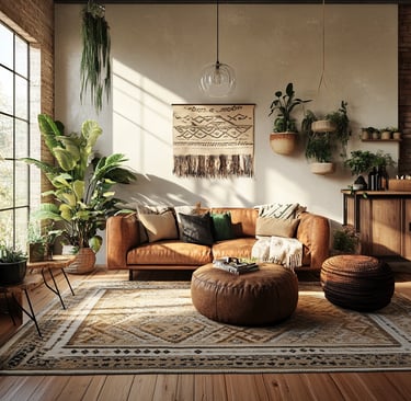 Styling an urban boho living room is all about layering textures, incorporating natural materials, and balancing modern and bohemian elements. By mixing leather furniture, woven textiles, geometric prints, and lush greenery, you can create a space that feels effortlessly chic, cozy, and stylish.