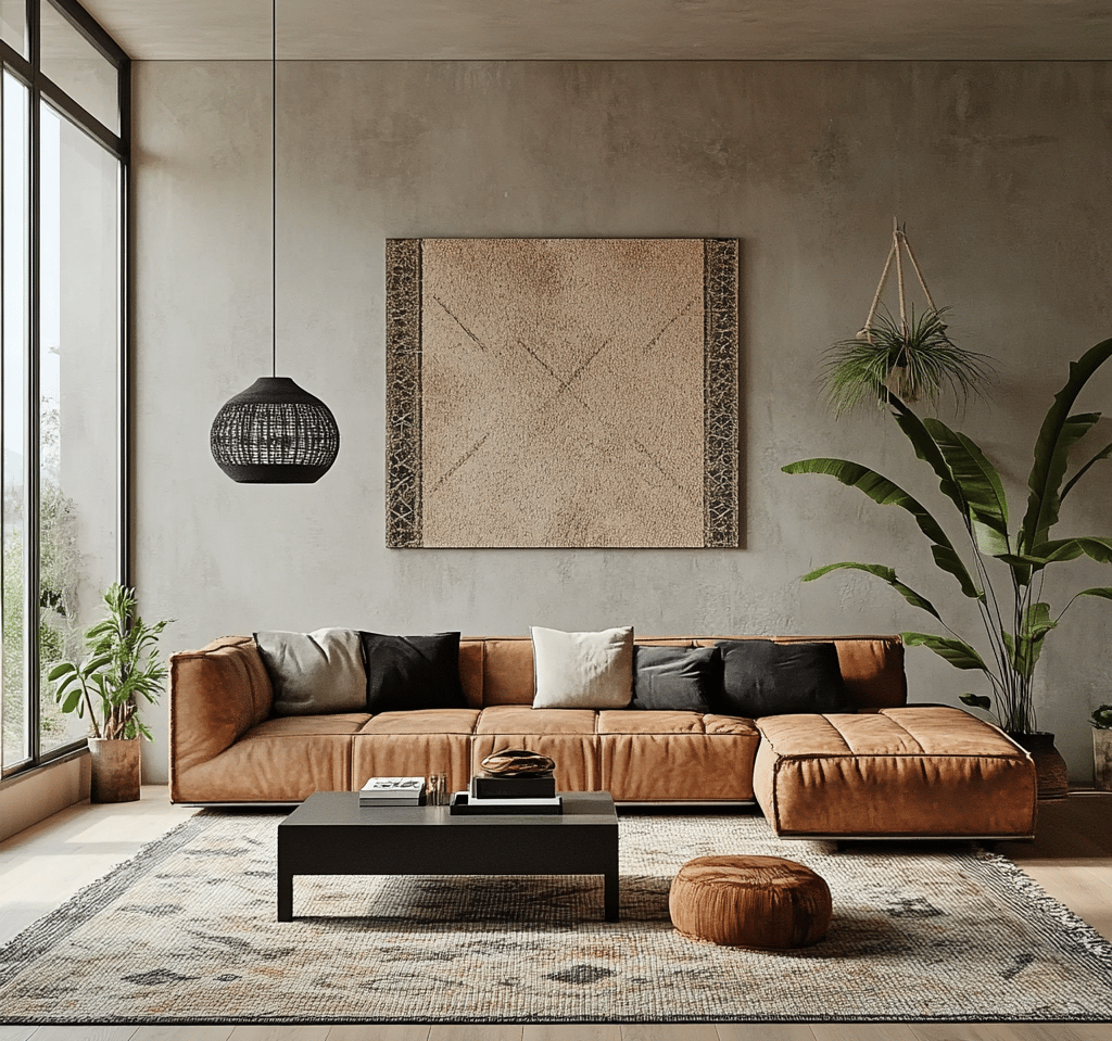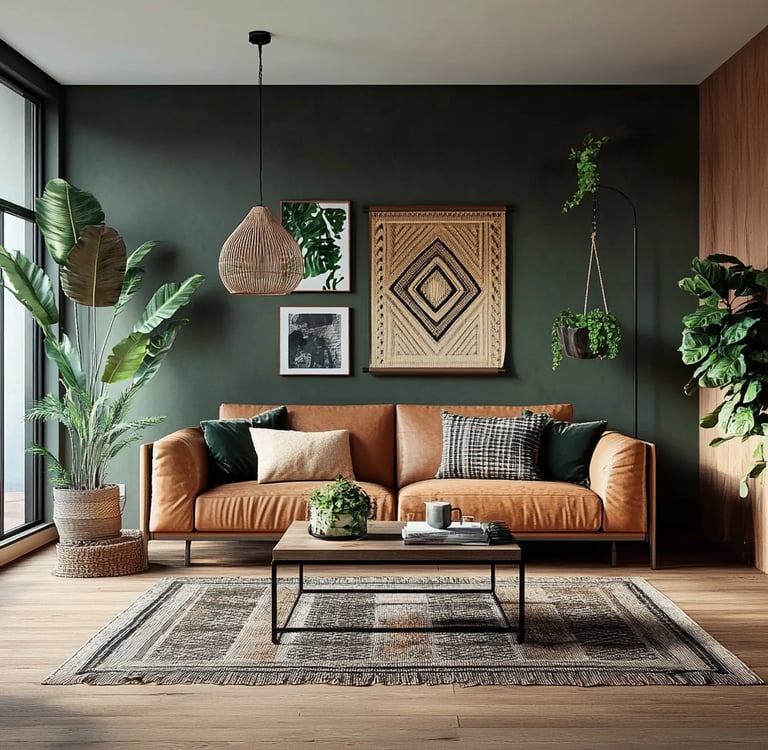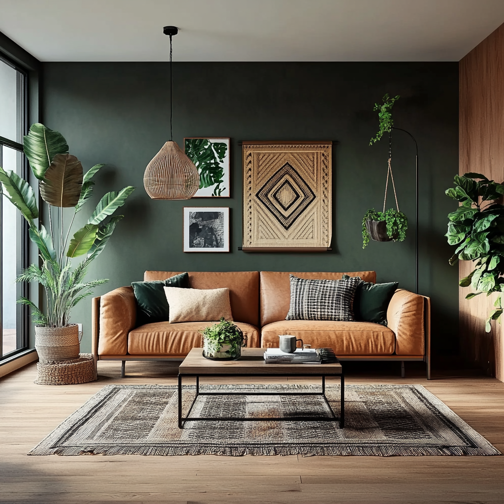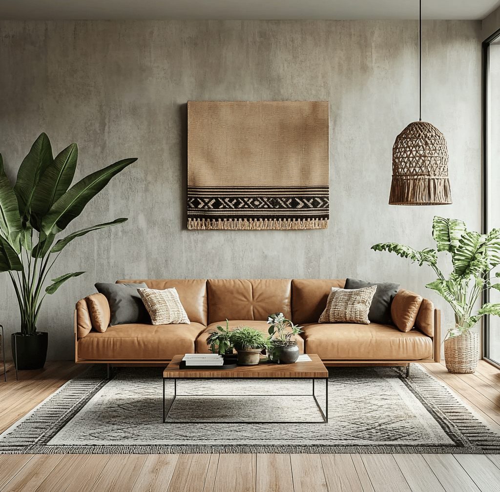 Styling an urban boho living room is all about layering textures, incorporating natural materials, and balancing modern and bohemian elements. By mixing leather furniture, woven textiles, geometric prints, and lush greenery, you can create a space that feels effortlessly chic, cozy, and stylish.