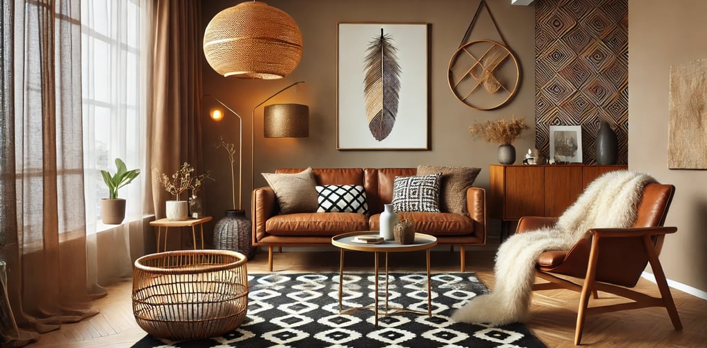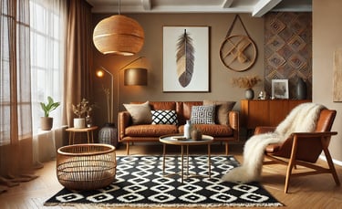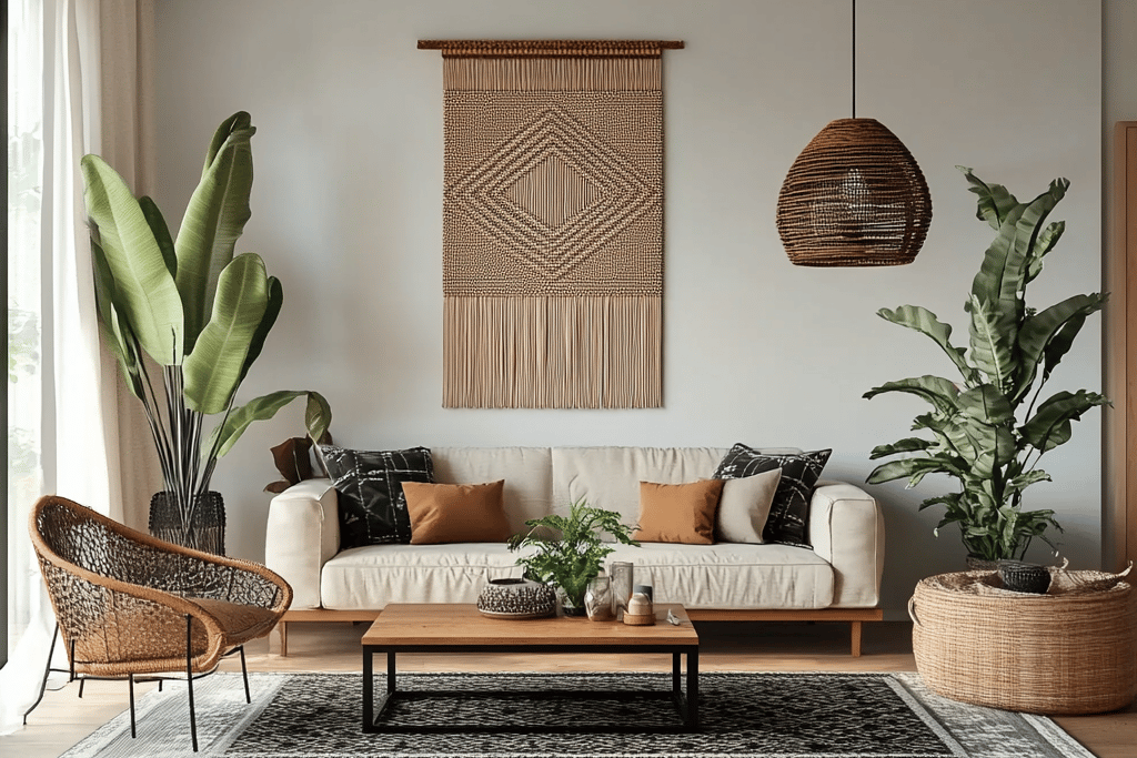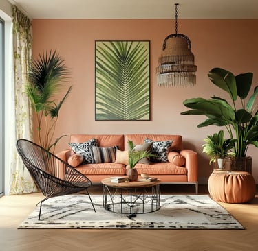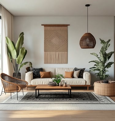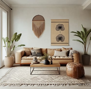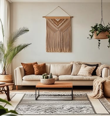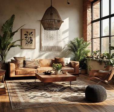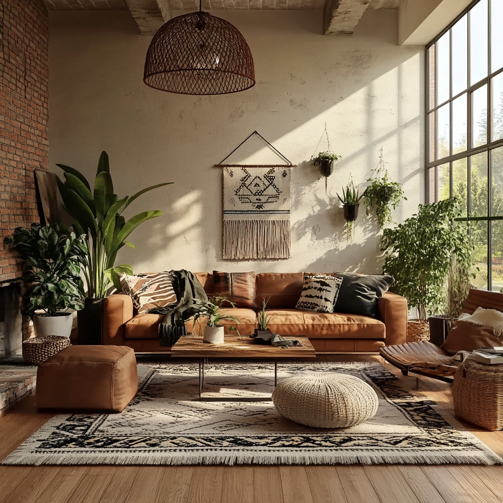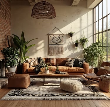 Urban boho style combines earthy textures, vintage finds, cozy layers, and a hint of eclectic energy — perfect for creating a stylish and relaxed atmosphere.