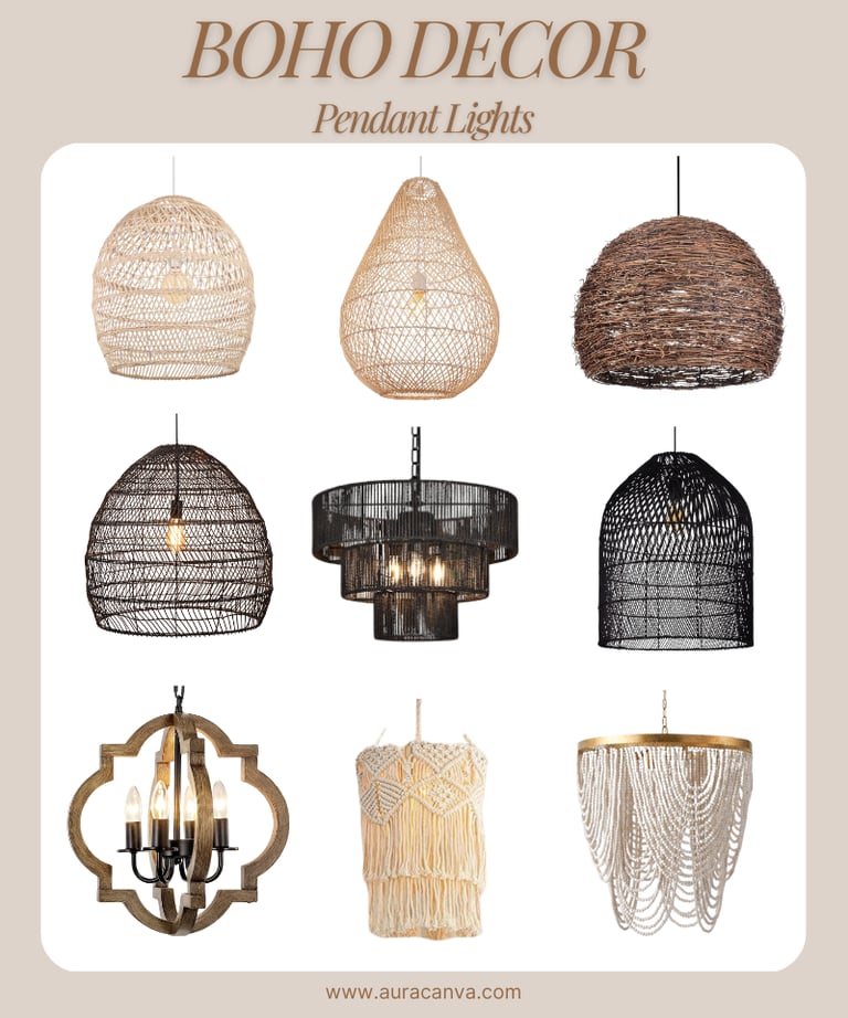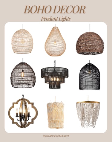 Each image showcases a unique way to bring urban bohemian decor to life — from layered textiles and oversized plants to vintage rugs and statement lighting.