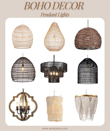Look for handmade pieces on Etsy, artisanal collections at Anthropologie, or affordable finds from Amazon, IKEA and World Market. For curated boho lighting collections, visit AuraCanva, where pieces like the ones in the image above are showcased.