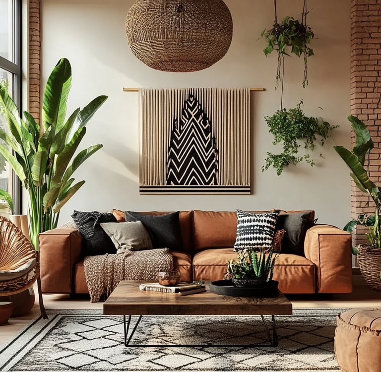 Mix Materials: Pair metal with rope, rattan with linen—boho is all about blending.